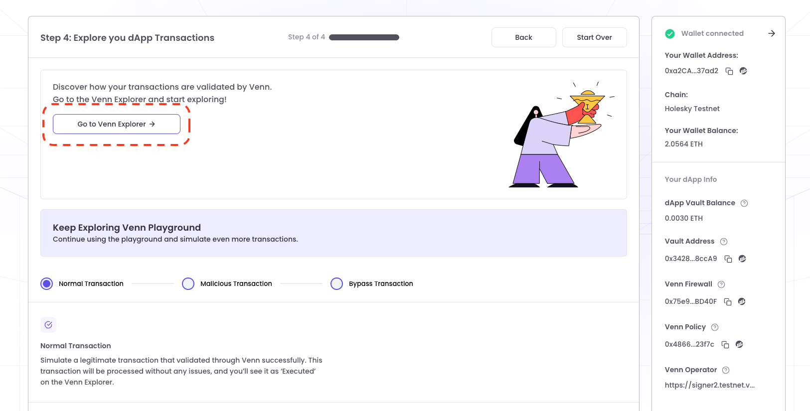 Connect your wallet to start exploring Venn Playground. This will enable you to simulate transactions.